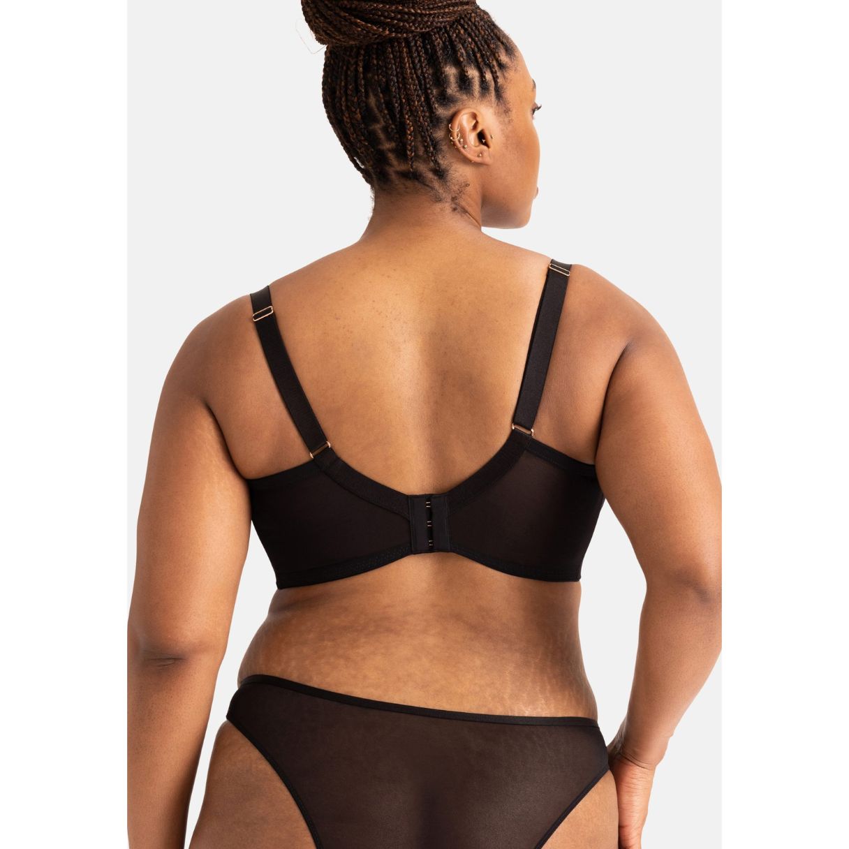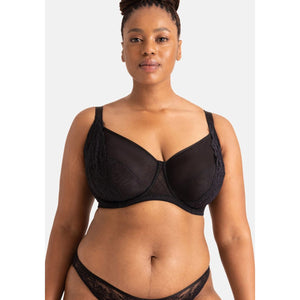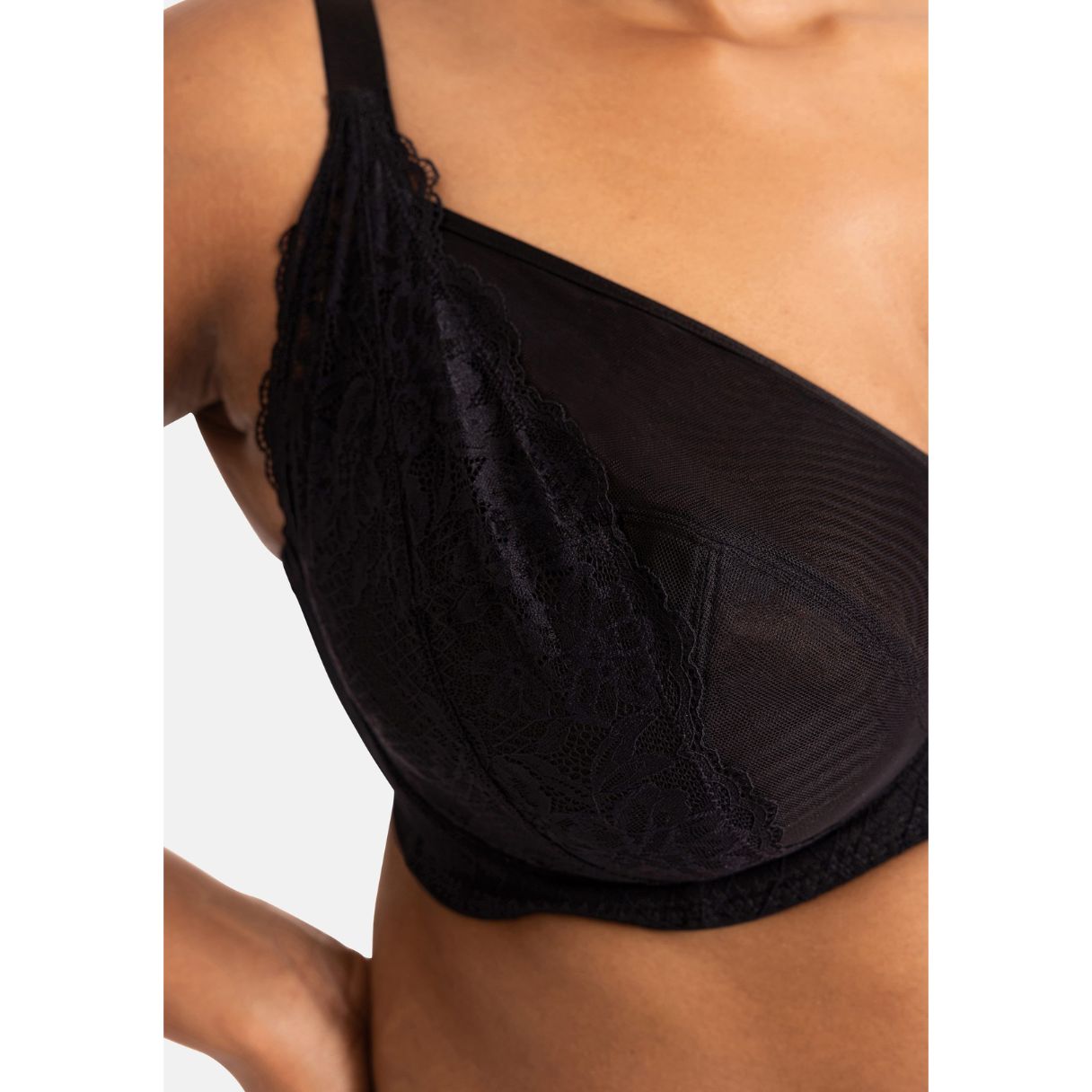 - Confeccionado con malla y encaje de fibras ecológicas.