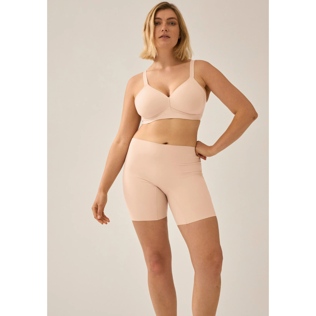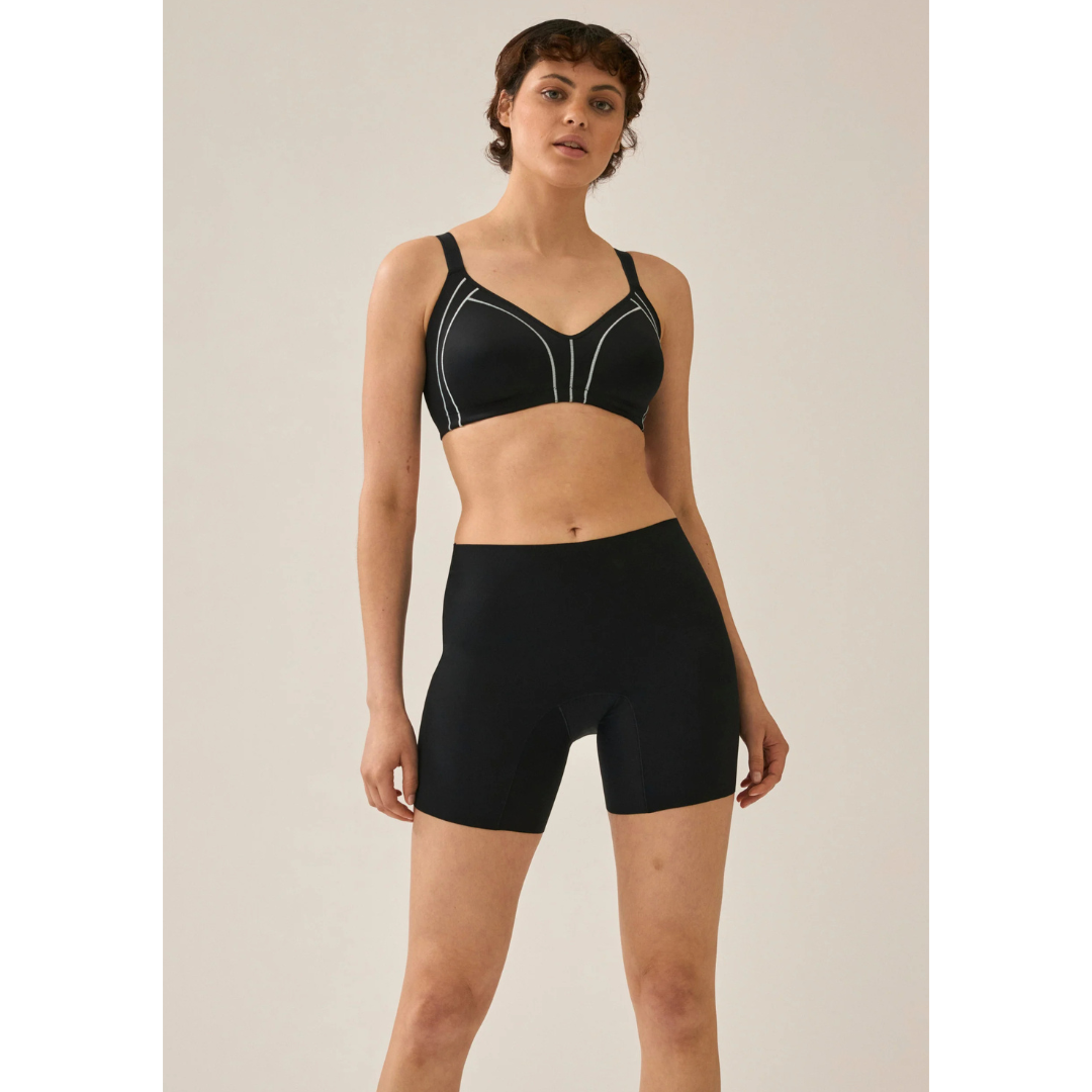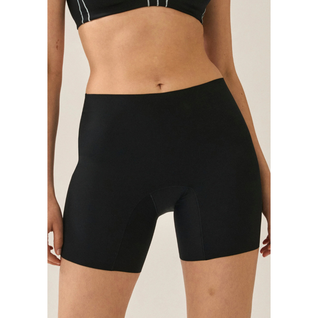 - Bermudas cortos estilo ciclista con un ligero efecto modelante.