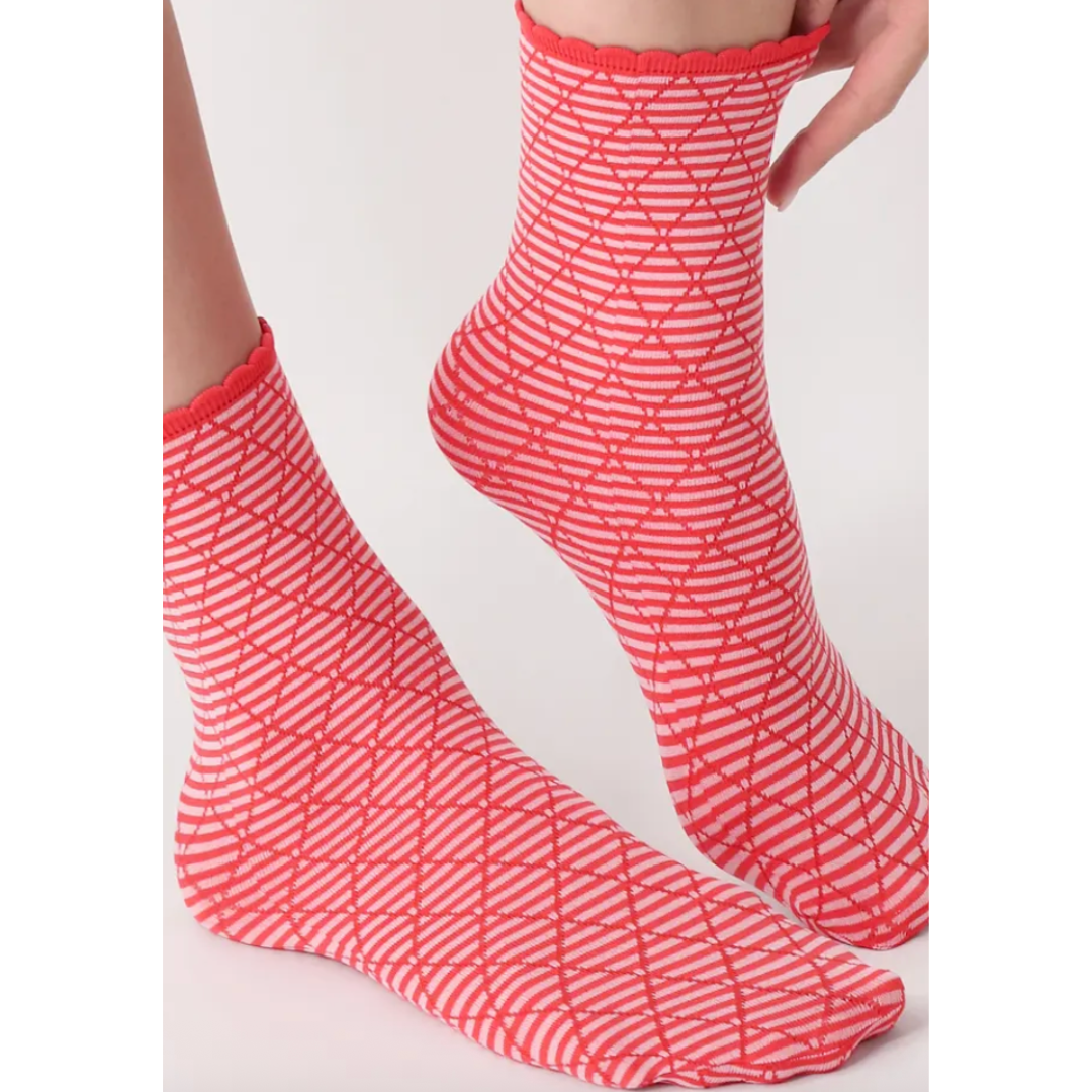 - Pack de dos calcetines hasta el tobillo, confeccionados en algodón calado.